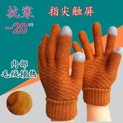 生产加工菠萝纹提花针织触屏男女冬季加绒加厚保暖手套厂家直销