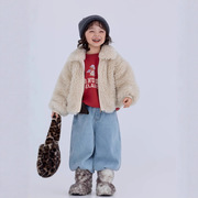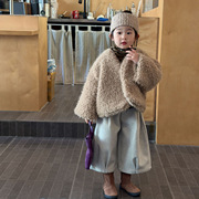童装冬款女童羊羔毛外套儿童单排扣小女孩加绒加厚保暖立领毛毛衣