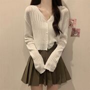 薄款木耳边V领针织衫女夏季新款长袖防晒小开衫显瘦短款外搭上衣