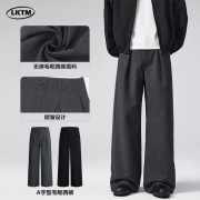 LKTM男装 秋冬款老钱风A字型褶皱毛呢西裤男女高级感百搭通勤长裤