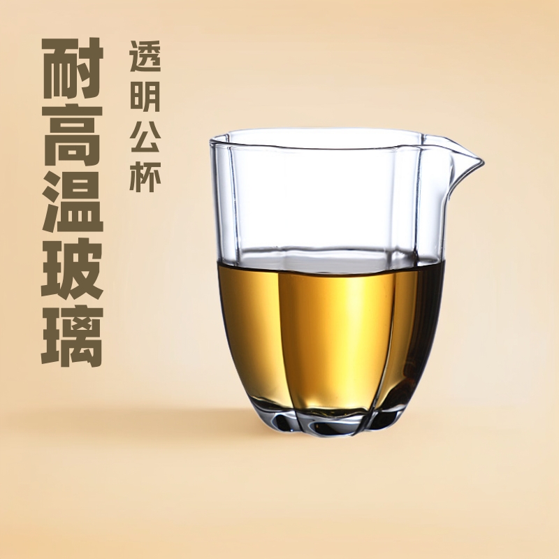 日式花瓣玻璃公道杯耐高温家用茶海分茶器功夫茶配件透明公杯
