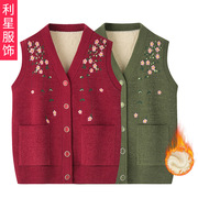 奶奶马甲春秋加绒70岁老太太刺绣背心老年人妈妈装开衫坎肩外套女