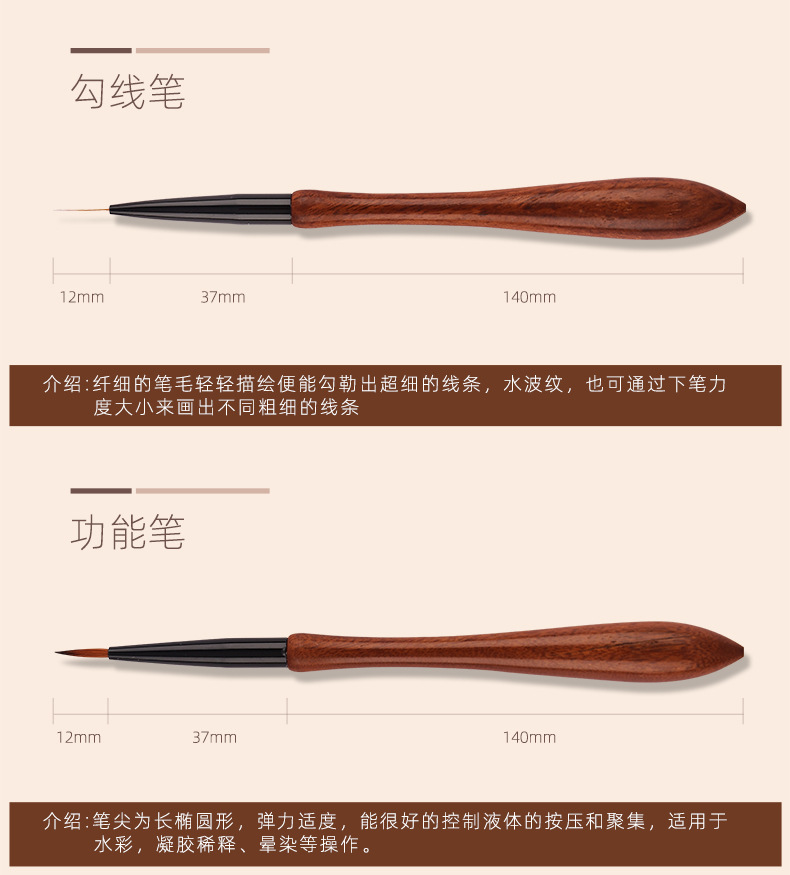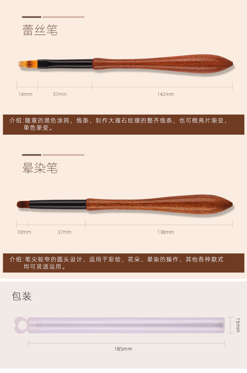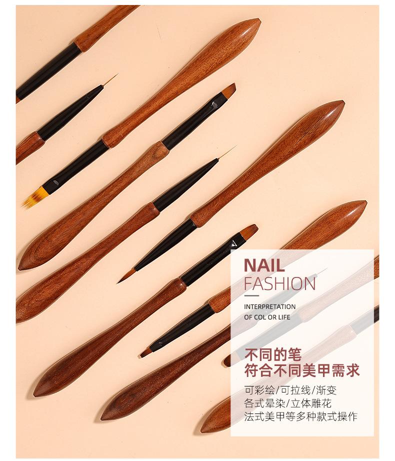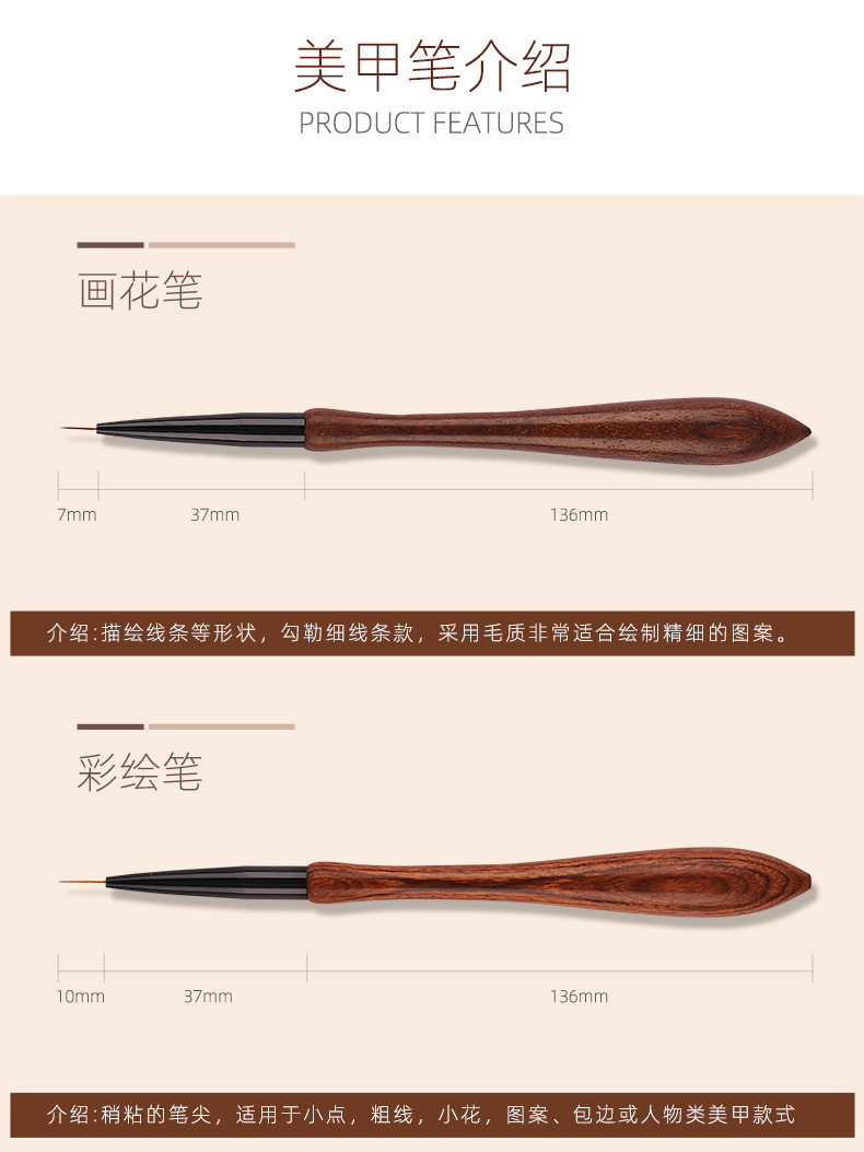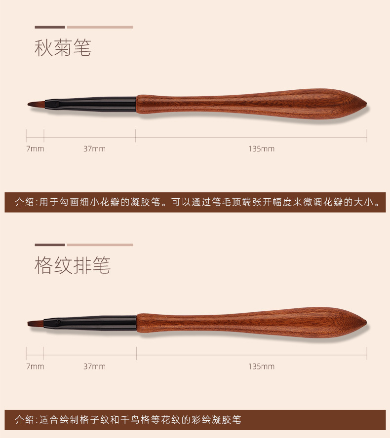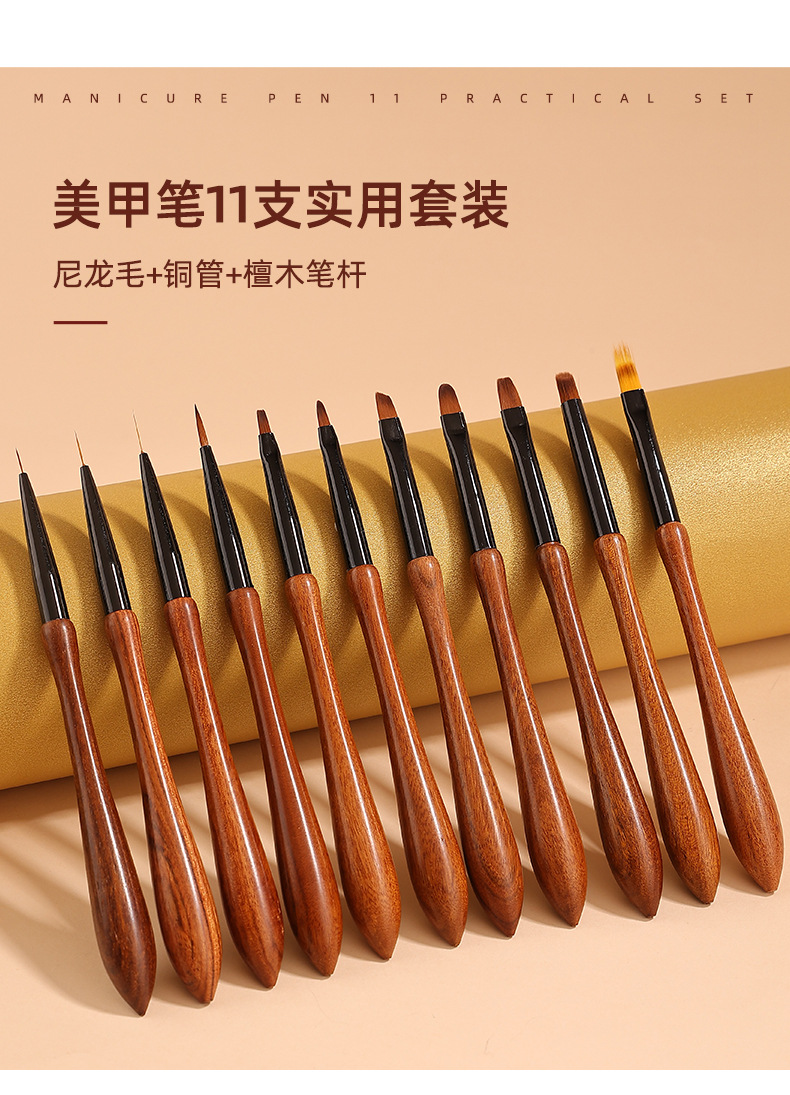 檀木杆日式美甲笔刷全套12支 葫芦柄彩绘画花秋菊笔美甲工具套装