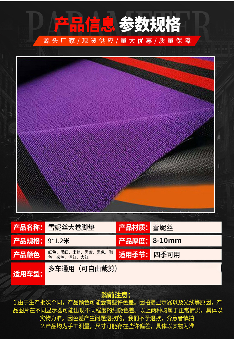 1.2*9米毛刺底雪尼丝脚垫通用汽车脚垫卷材防滑脚垫踏垫自由剪裁