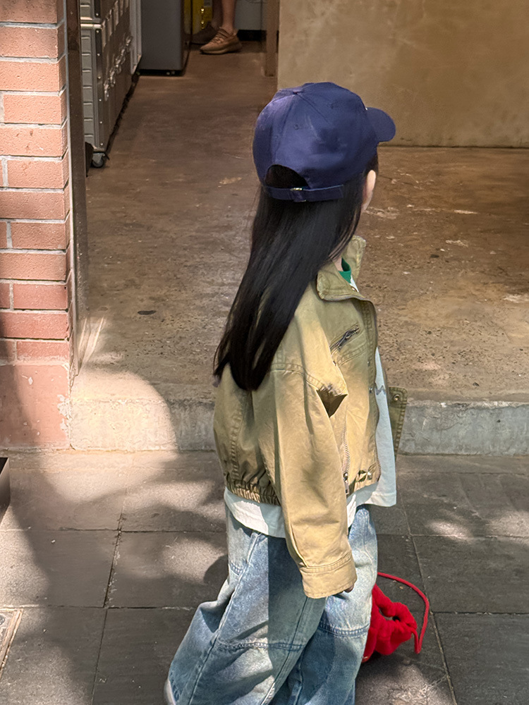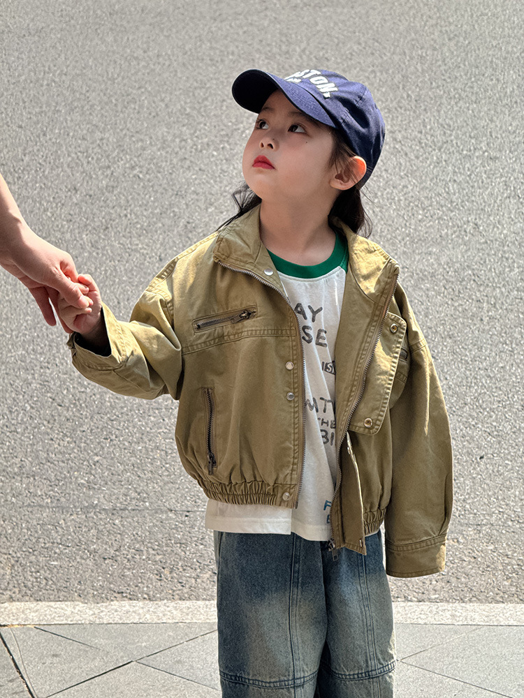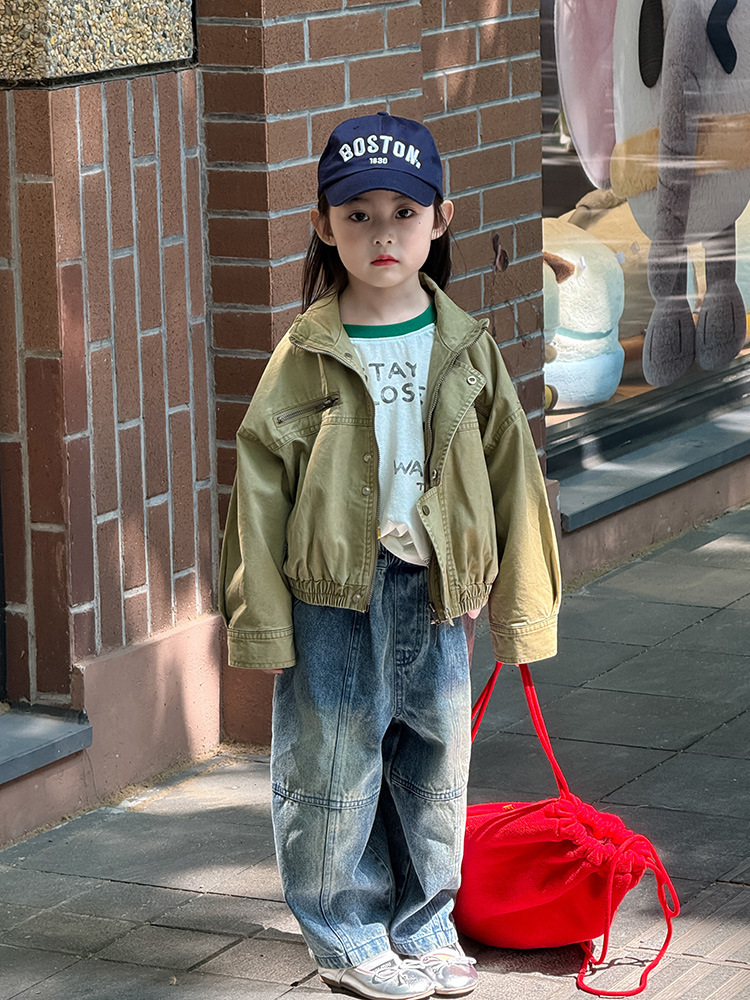 儿童洗褪做旧复古夹克2025秋季新款日系韩系男女童废土风拉链外套
