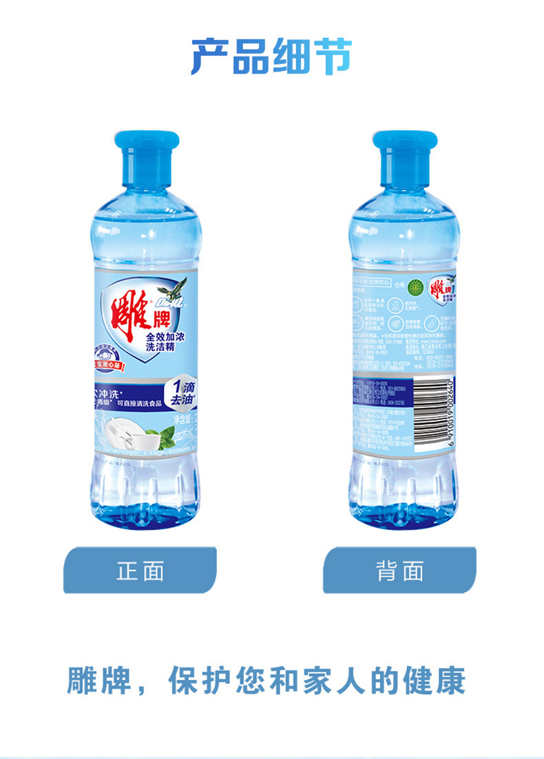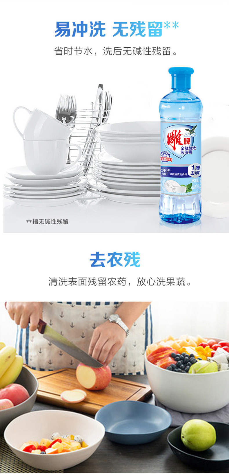 雕牌洗洁精全效加浓220g瓶果蔬厨房餐具清洁迷你学生洗涤灵家庭装