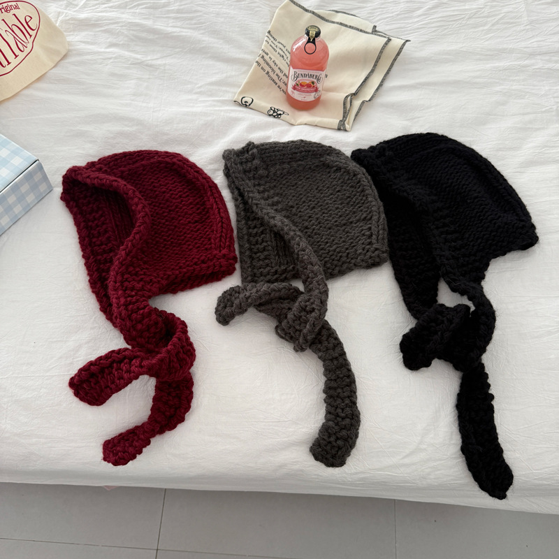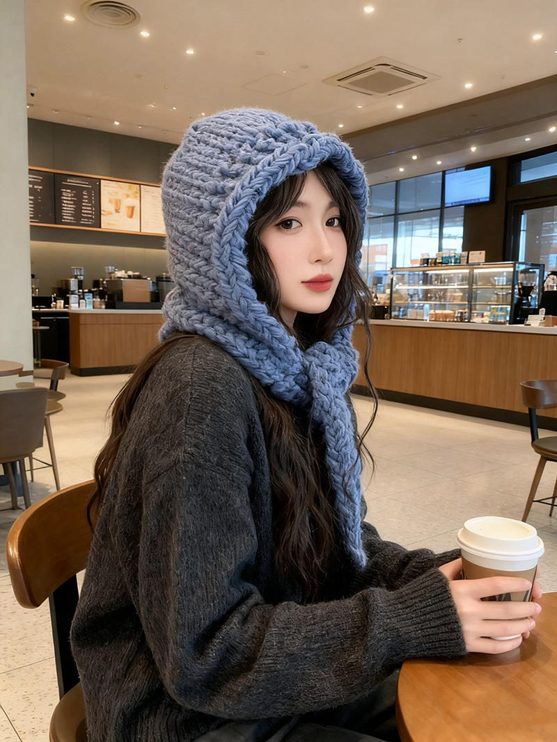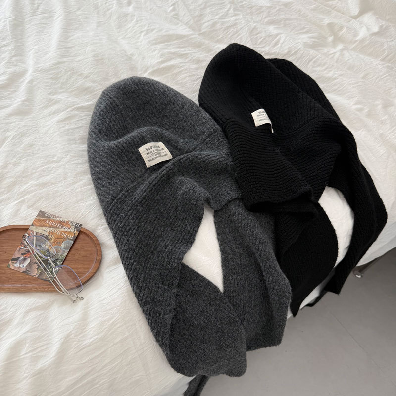 百搭新款高弹力纯色针织帽子围脖口罩连体帽女冬季骑车防风保暖帽