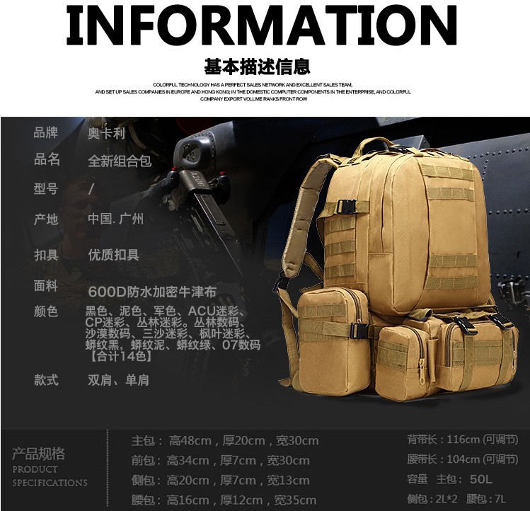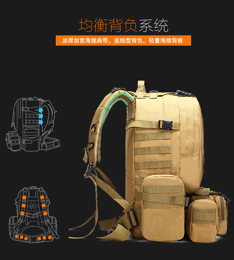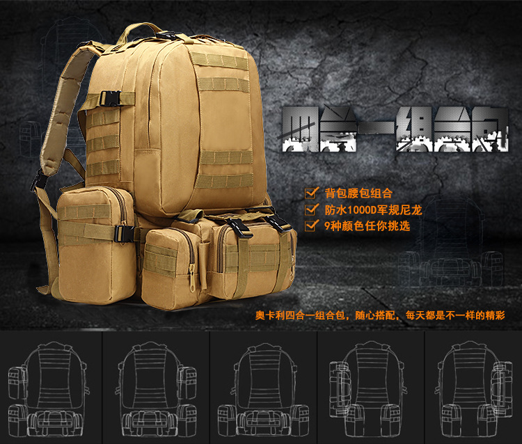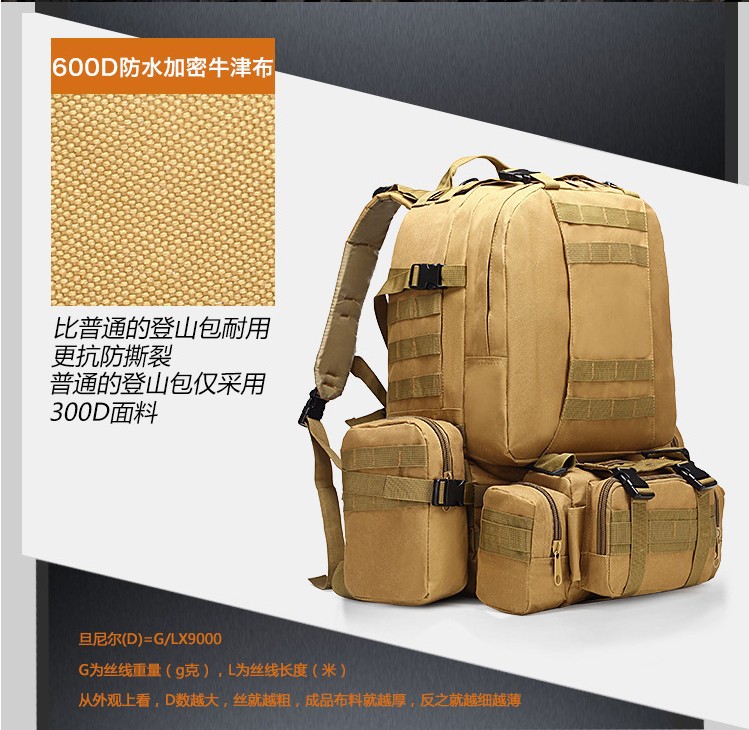 户外牛津布背包 徒步战术包登山大组合背包男士露营旅行包