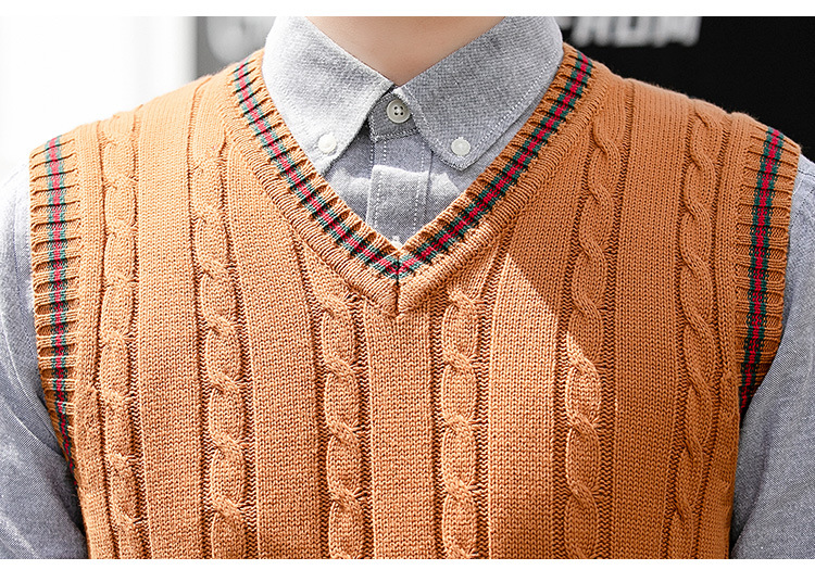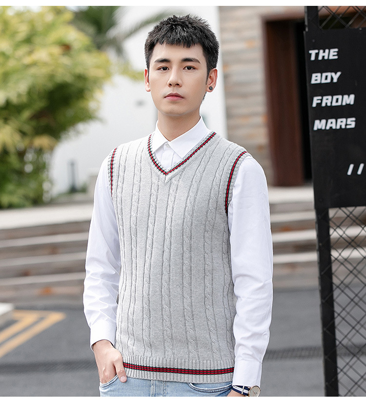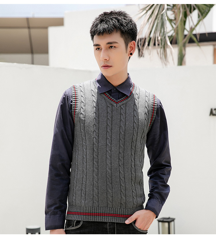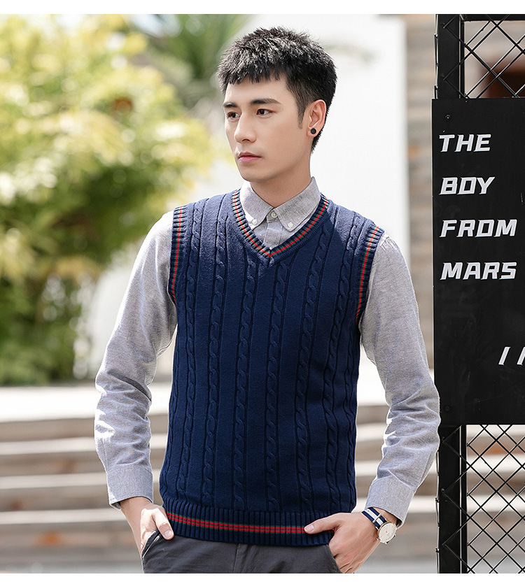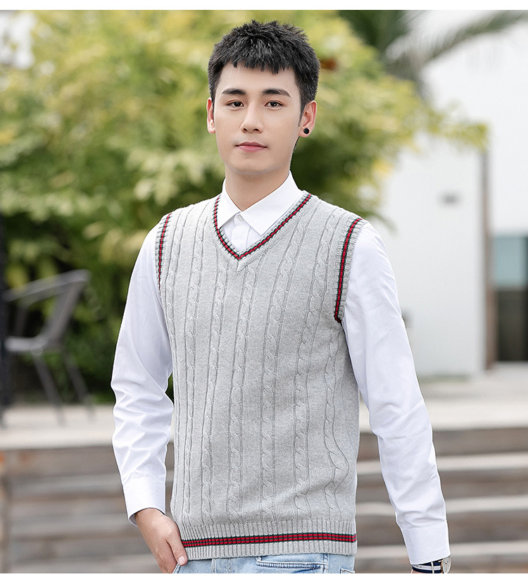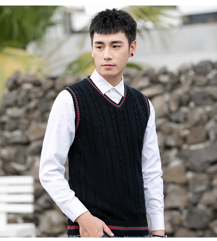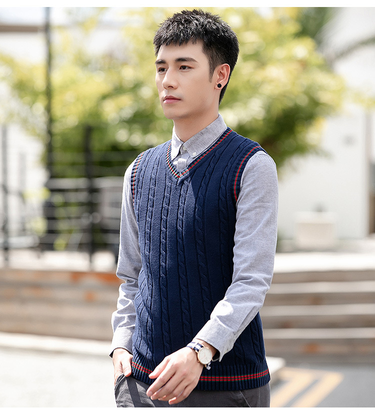 针织毛衣背心男秋冬季韩版无袖马甲毛衫V领套头时尚撞色打底线衣
