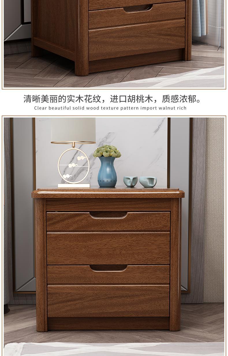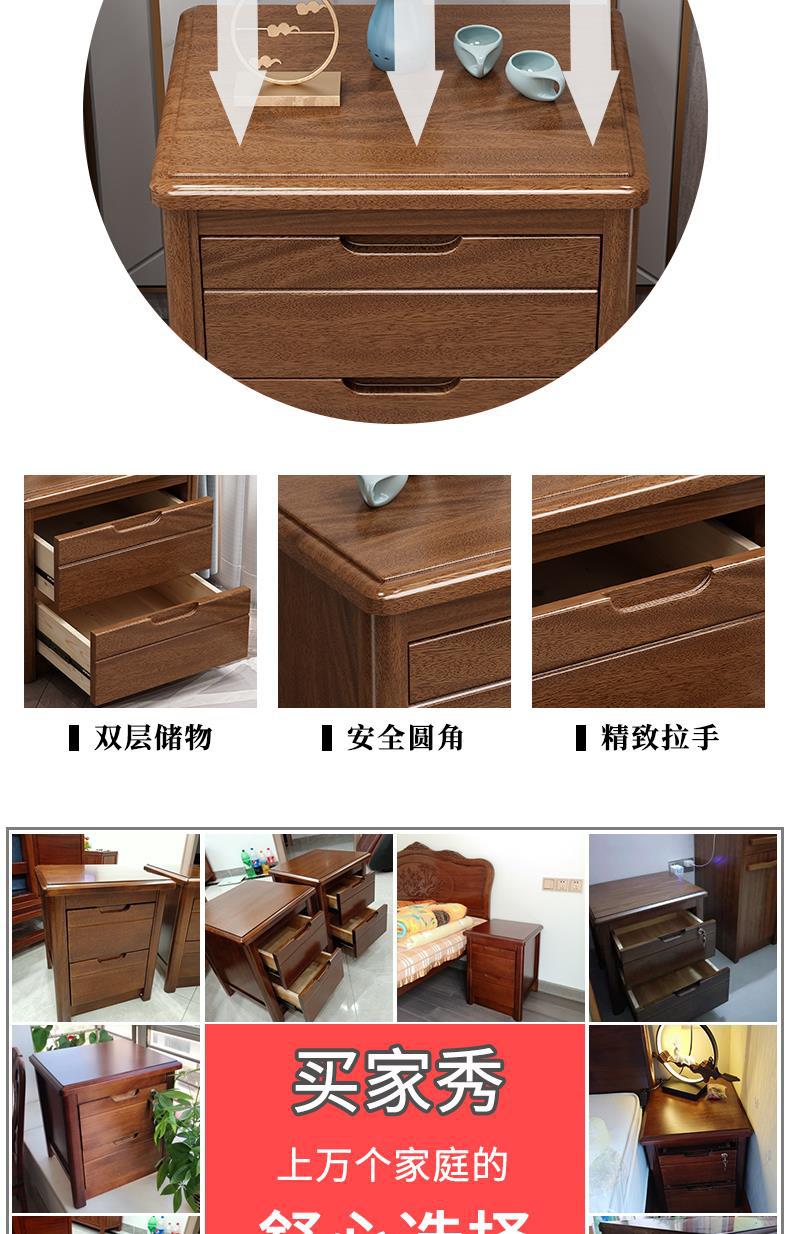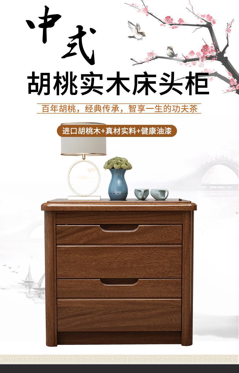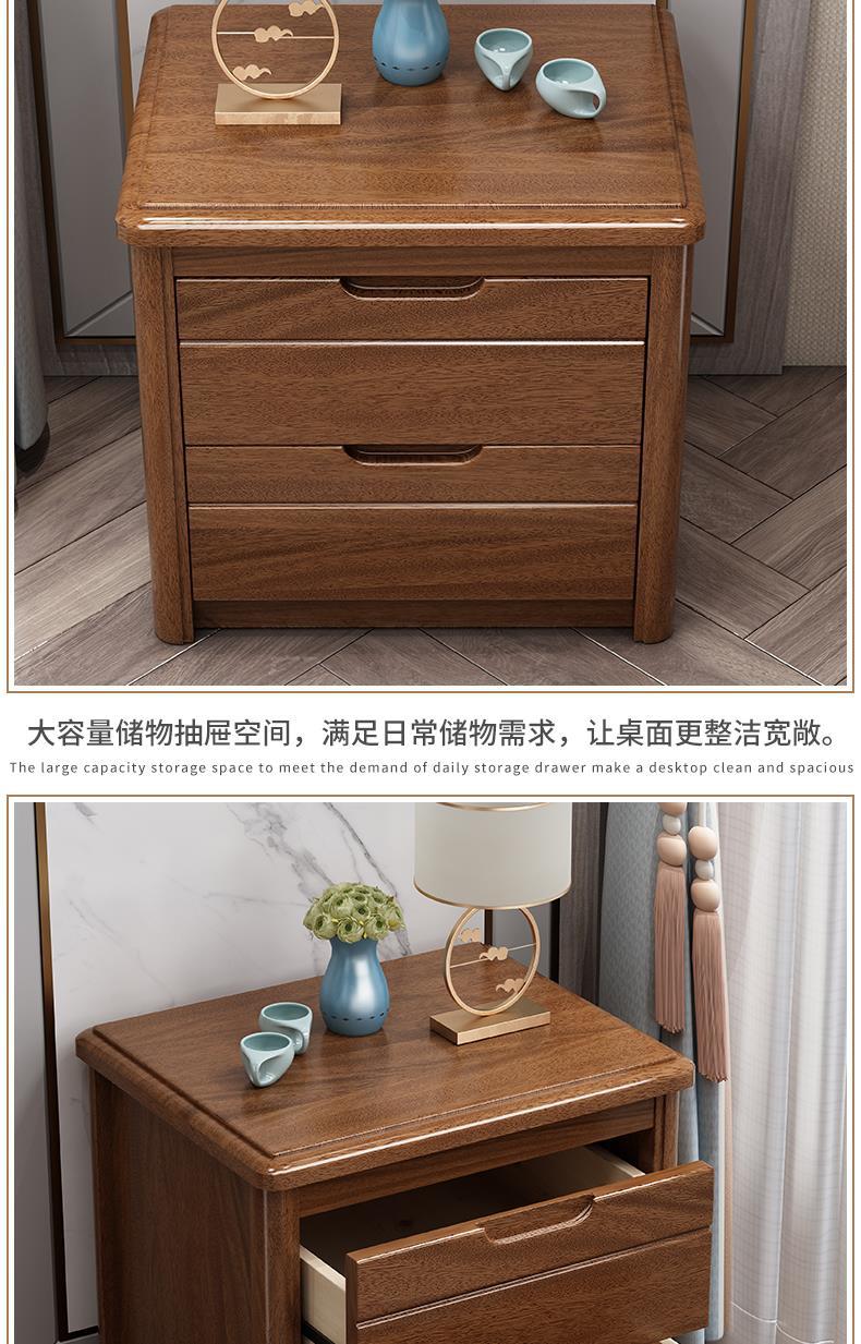 全实木床头柜现代简约家用卧室收纳储物柜小户型中式胡桃木床边柜