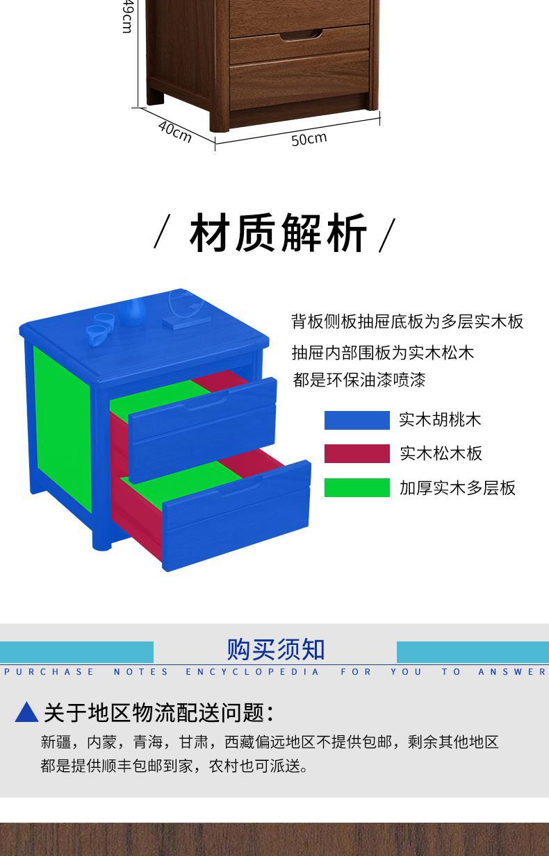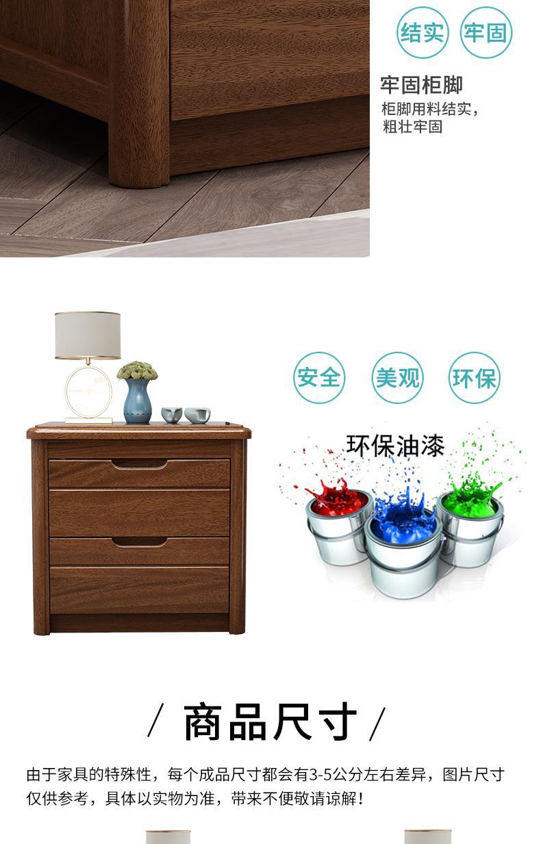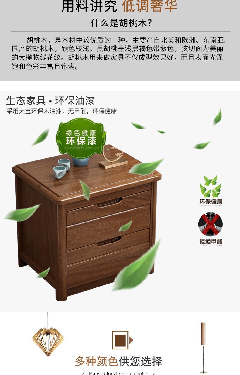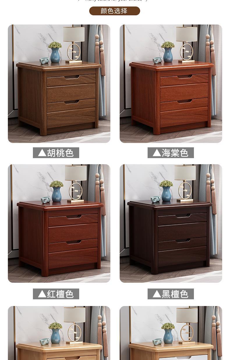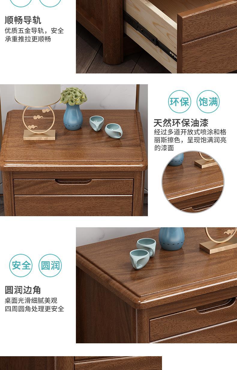 全实木床头柜现代简约家用卧室收纳储物柜小户型中式胡桃木床边柜