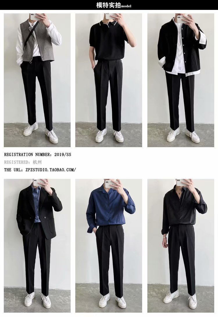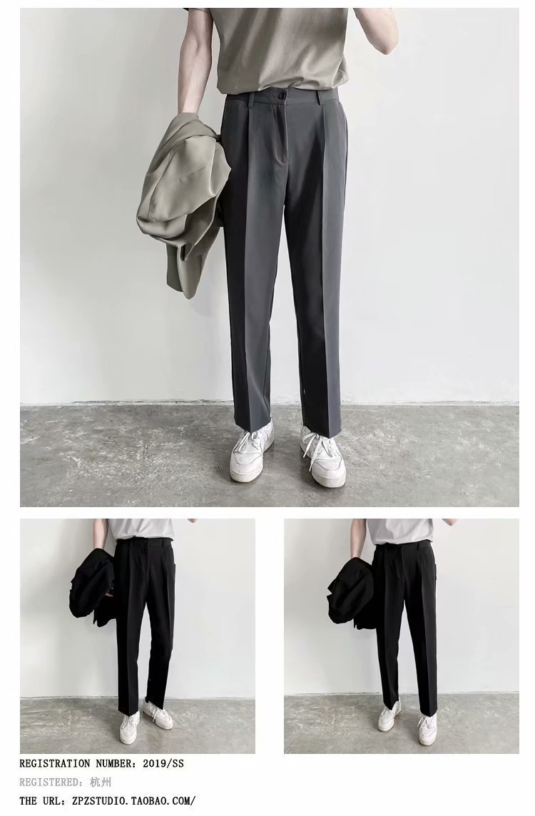 韩版男生直筒长裤夏季青少年垂感阔腿九分裤子潮流帅男士休闲西裤