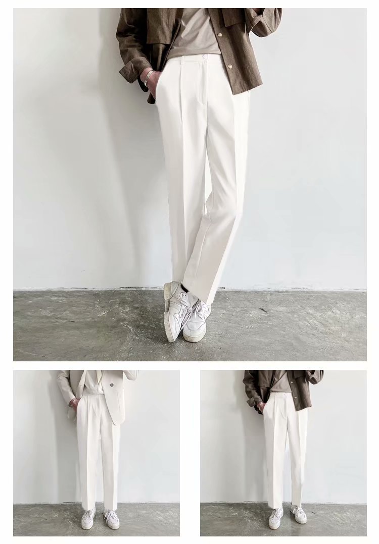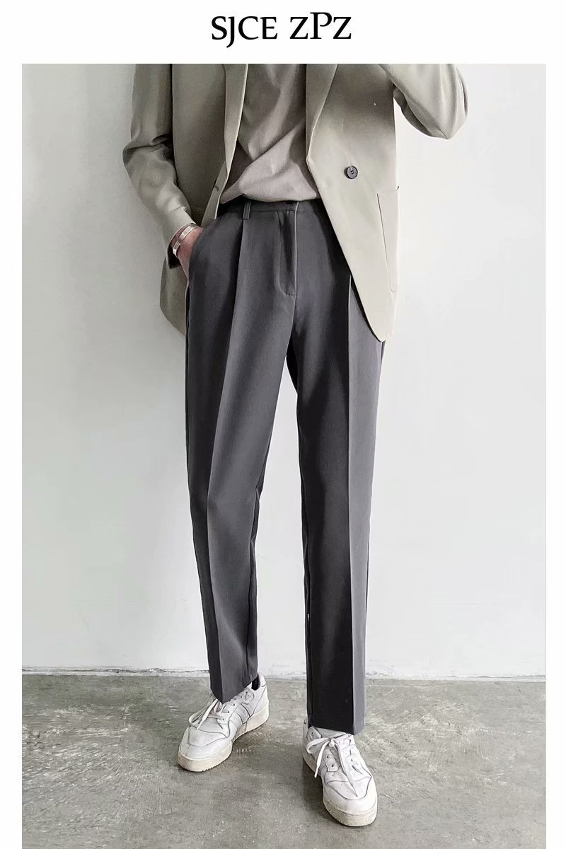 欧洲站小西裤男九分裤直筒修身小脚休闲韩版休闲坠感男士西装裤子