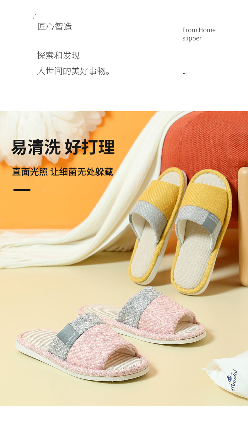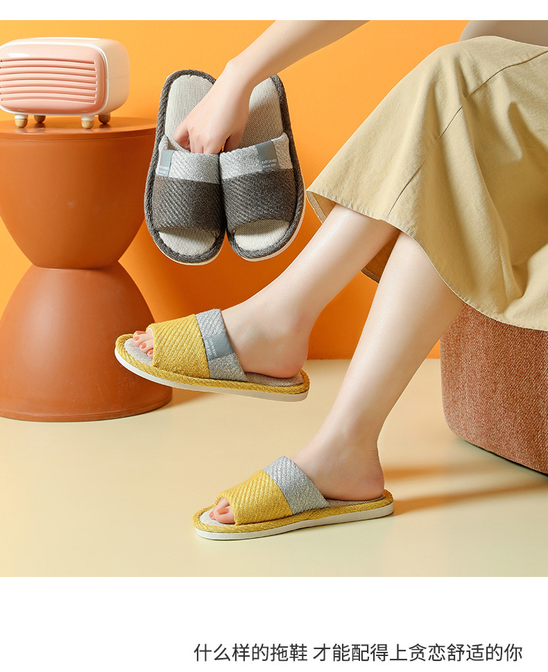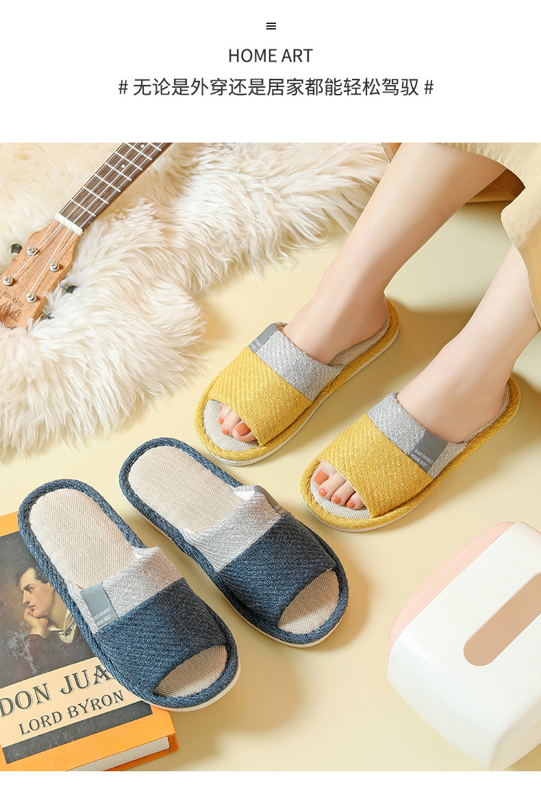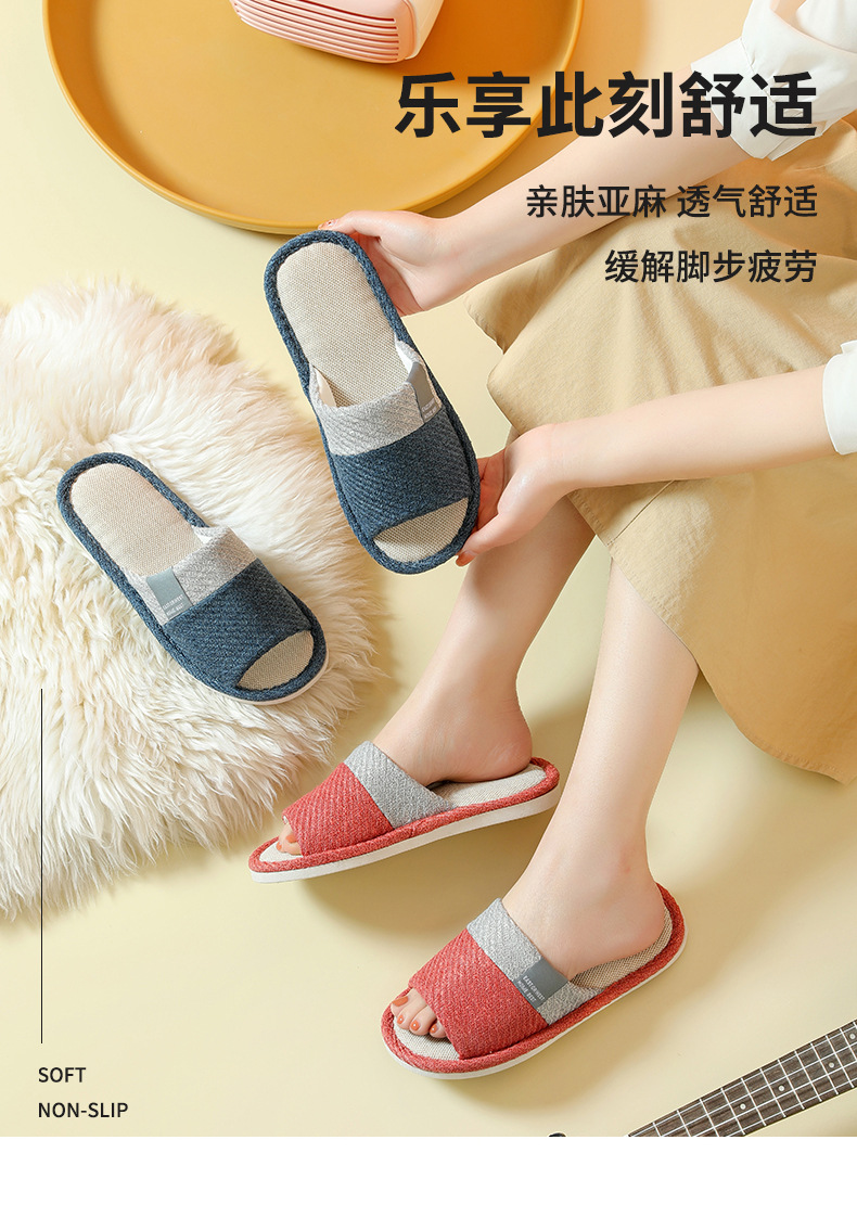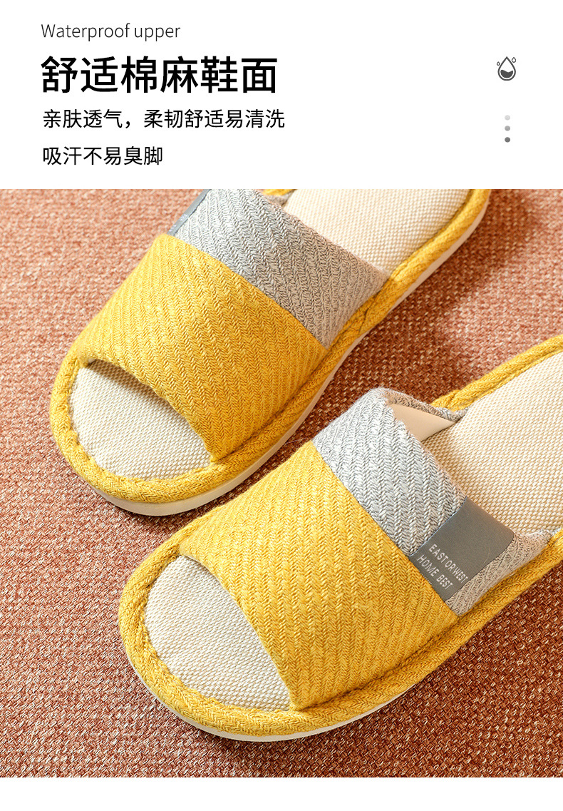 名宿四季亚麻开口拖鞋 情侣家居室内星级酒店专用EVA室内地板男女