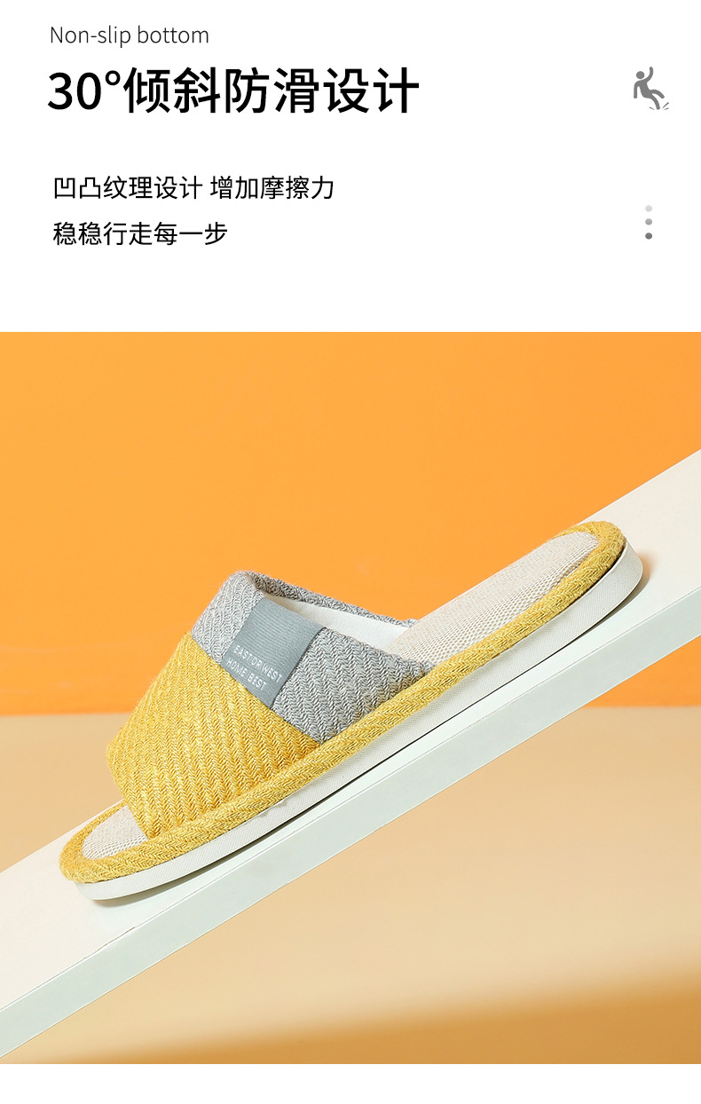 春夏季纯色家居木地板亚麻拖鞋酒店情侣静音透气泡沫底室内家用拖