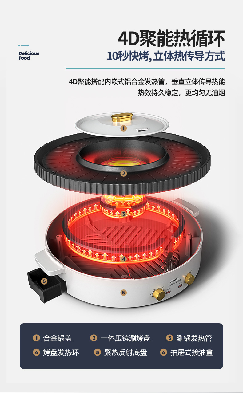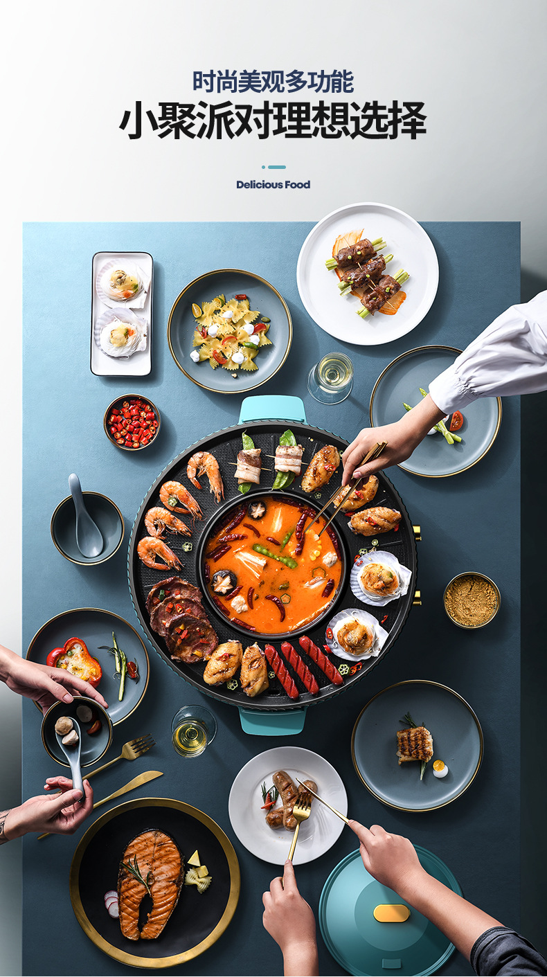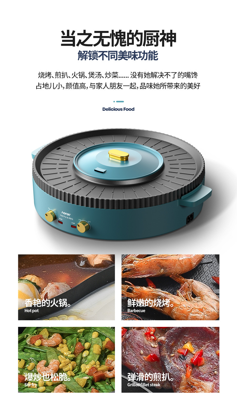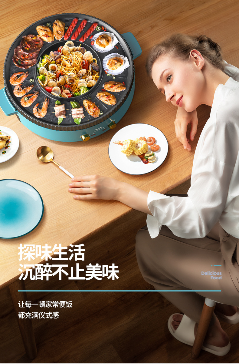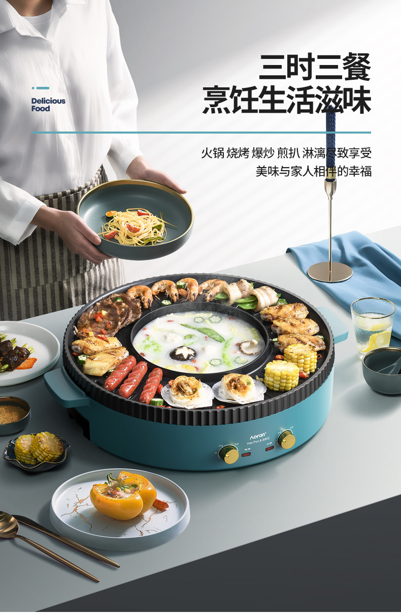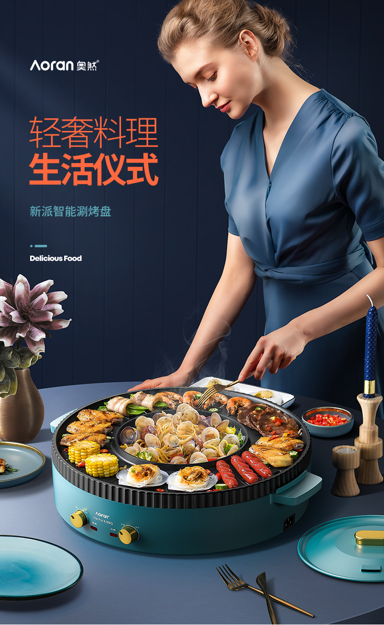 奥然多功能火锅锅电烧烤炉一体锅家用韩式烤盘涮烤两用烤肉烤鱼机