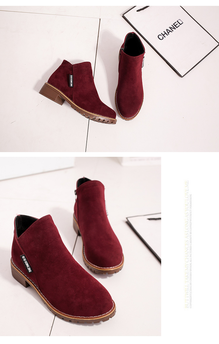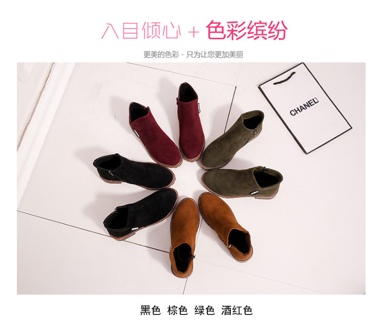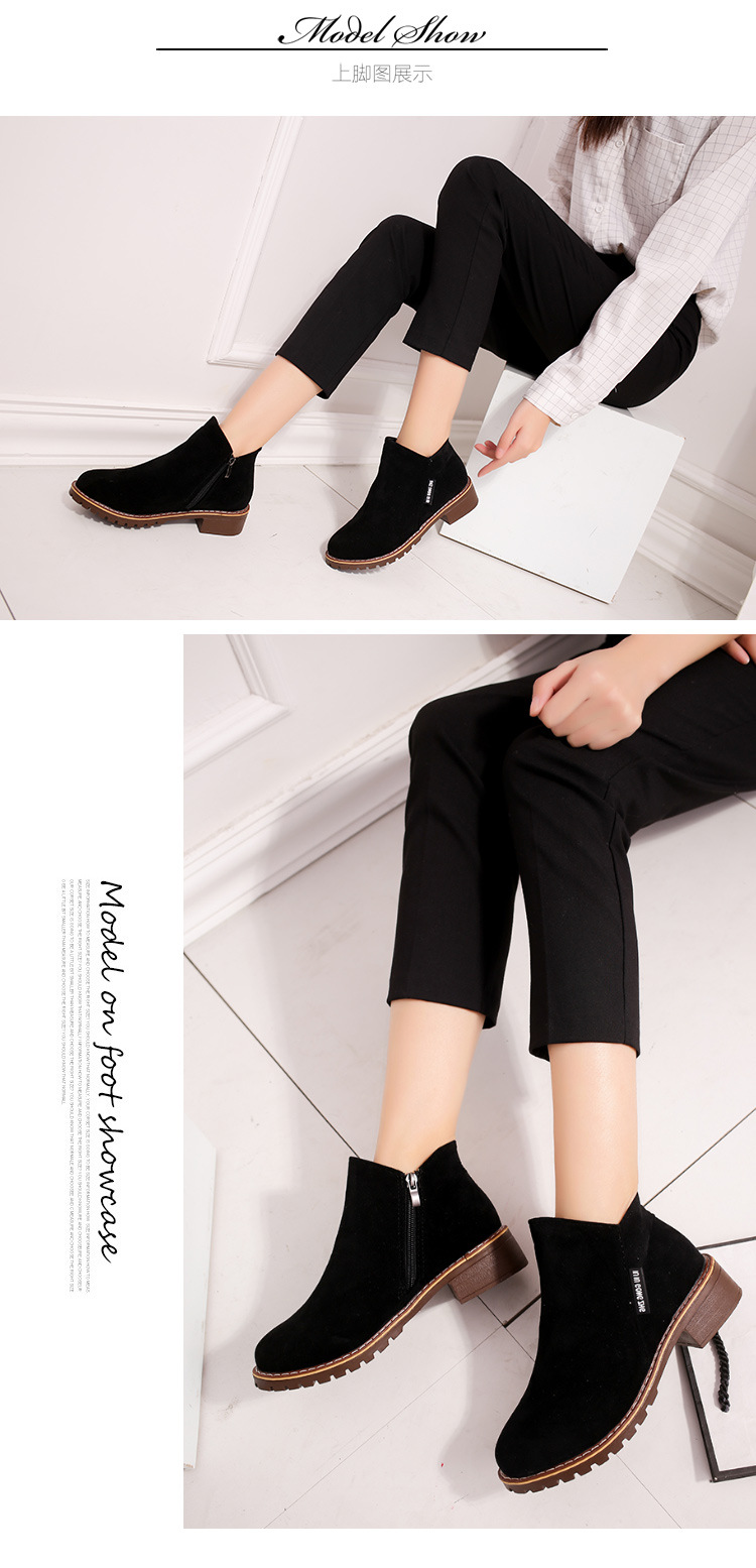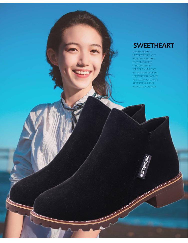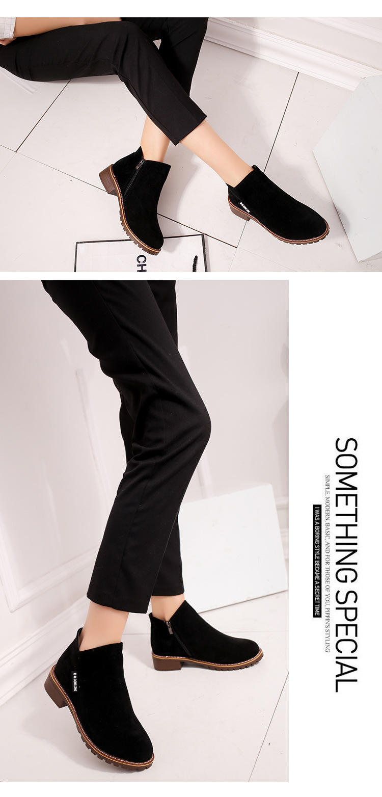 2019秋冬新款韩版加绒马丁靴女侧拉链短靴女低跟低筒学生学院风女