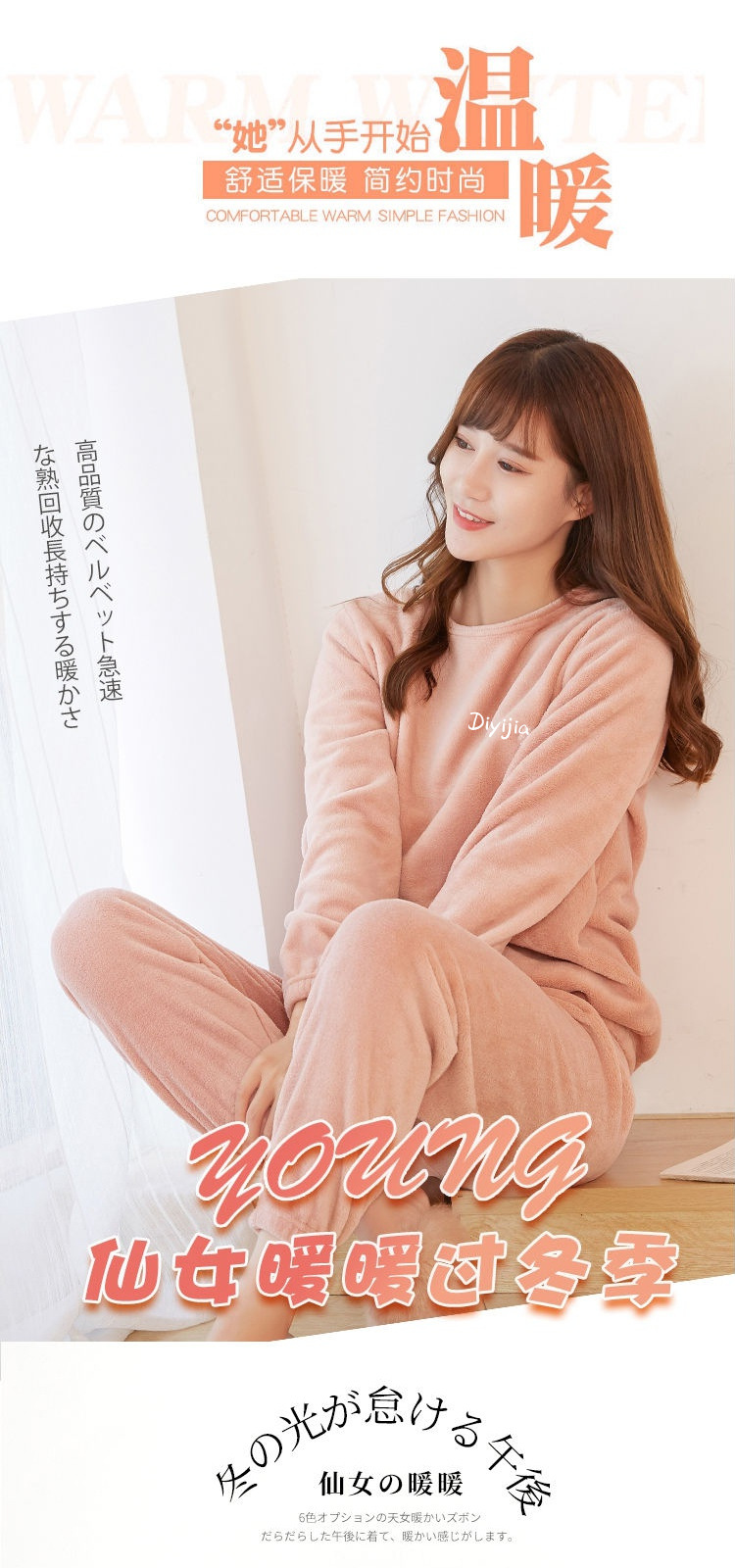 仙女暖暖裤套装暖暖套装女厚珊瑚绒家居套装外穿百搭宽松懒人套装