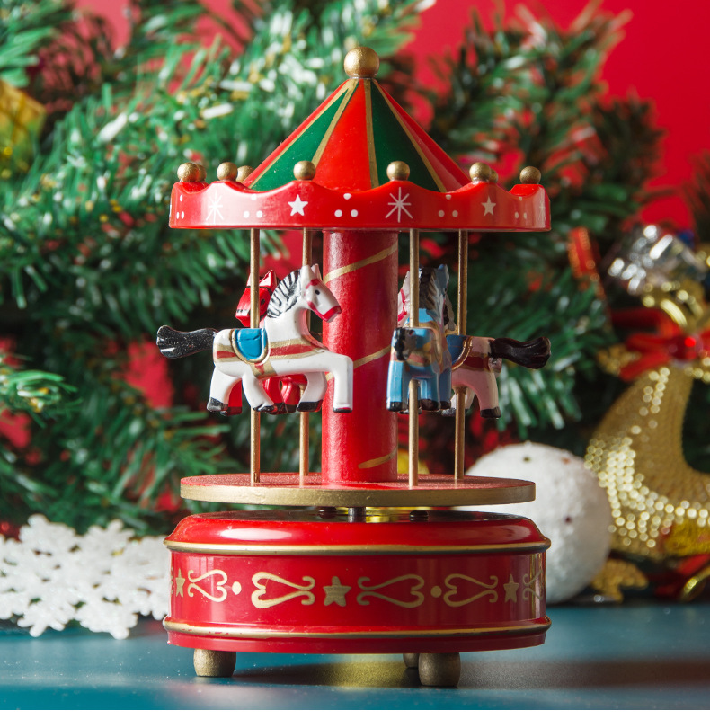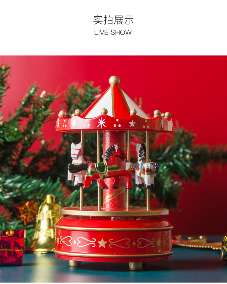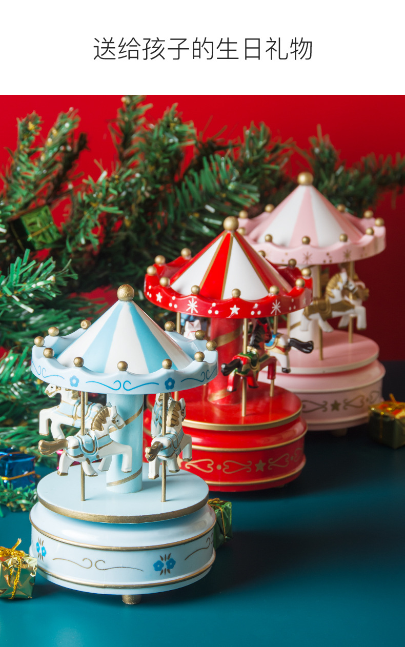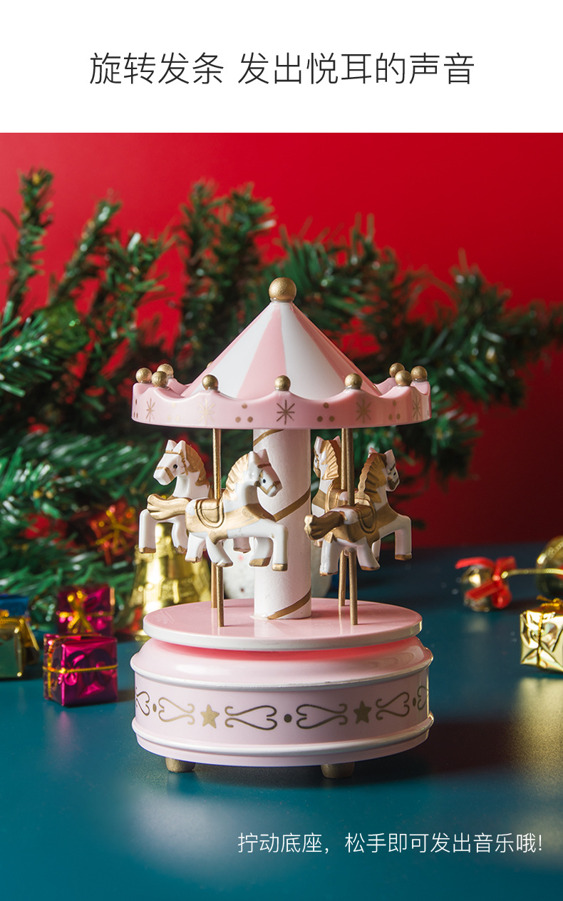 圣诞礼物旋转木马木质八音盒生日礼物儿童家居创意摆件