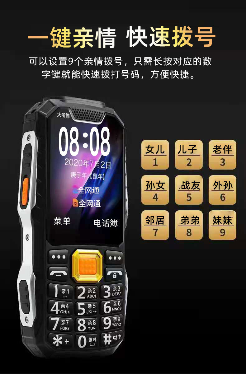 耐摔大声超长待机全网通4G军工三防电霸超大声音大屏5G老年人手机