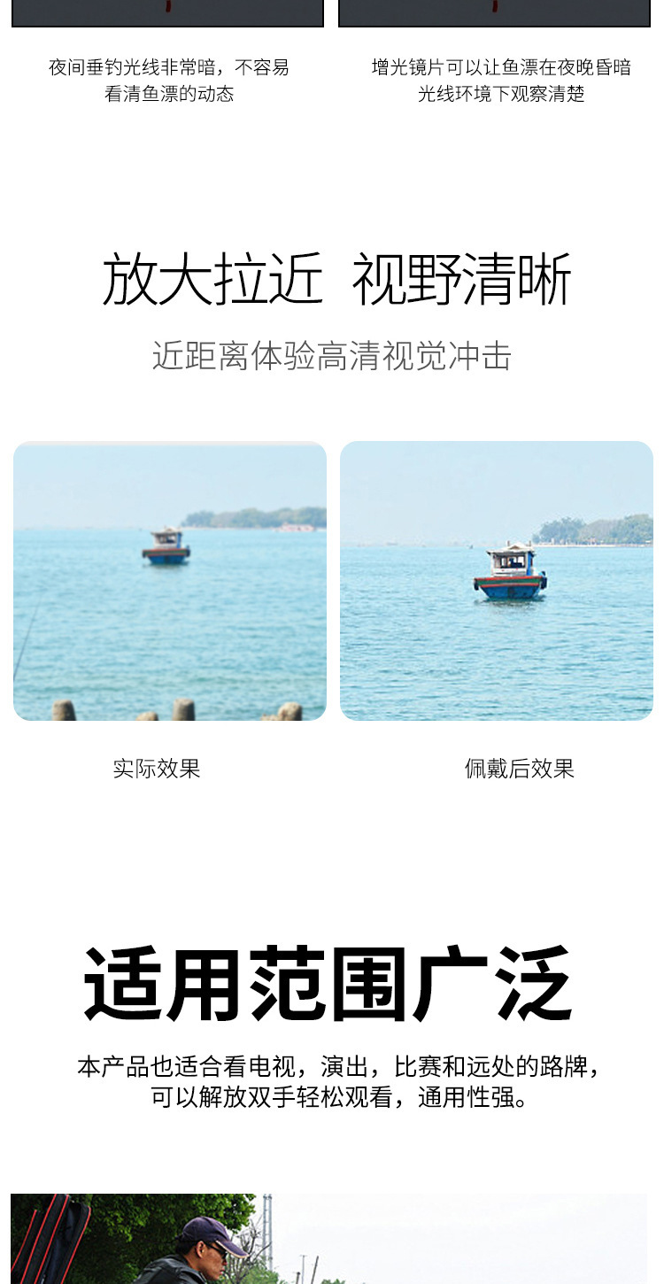 钓鱼望远镜拉近放大看漂偏光眼镜式望远镜垂钓钩鱼镜厂家供应