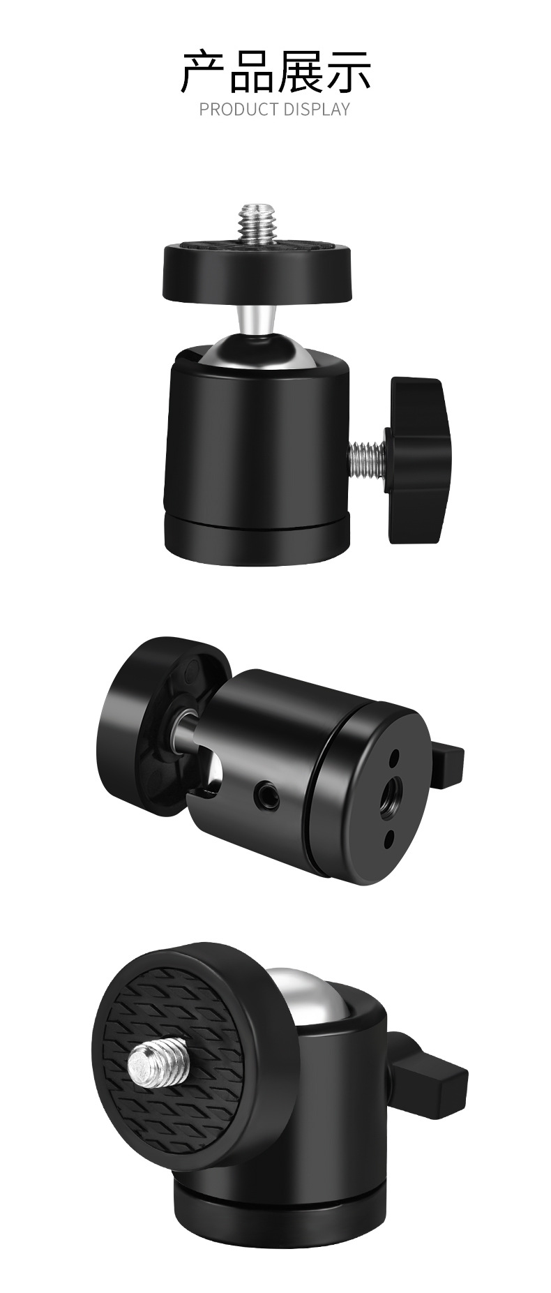 1/4接口金属云台塑料云台三脚架补光灯通用云台迷你云台摄影配件