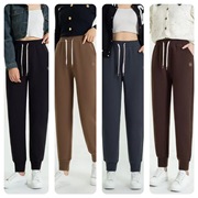 加绒加厚百搭舒适卫裤女冬款高腰宽松撞色抽绳运动直筒阔腿休闲裤
