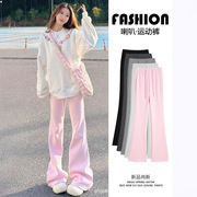 2025新款春夏粉色喇叭裤女高腰显瘦休闲卫裤小个子微喇瑜伽运动裤