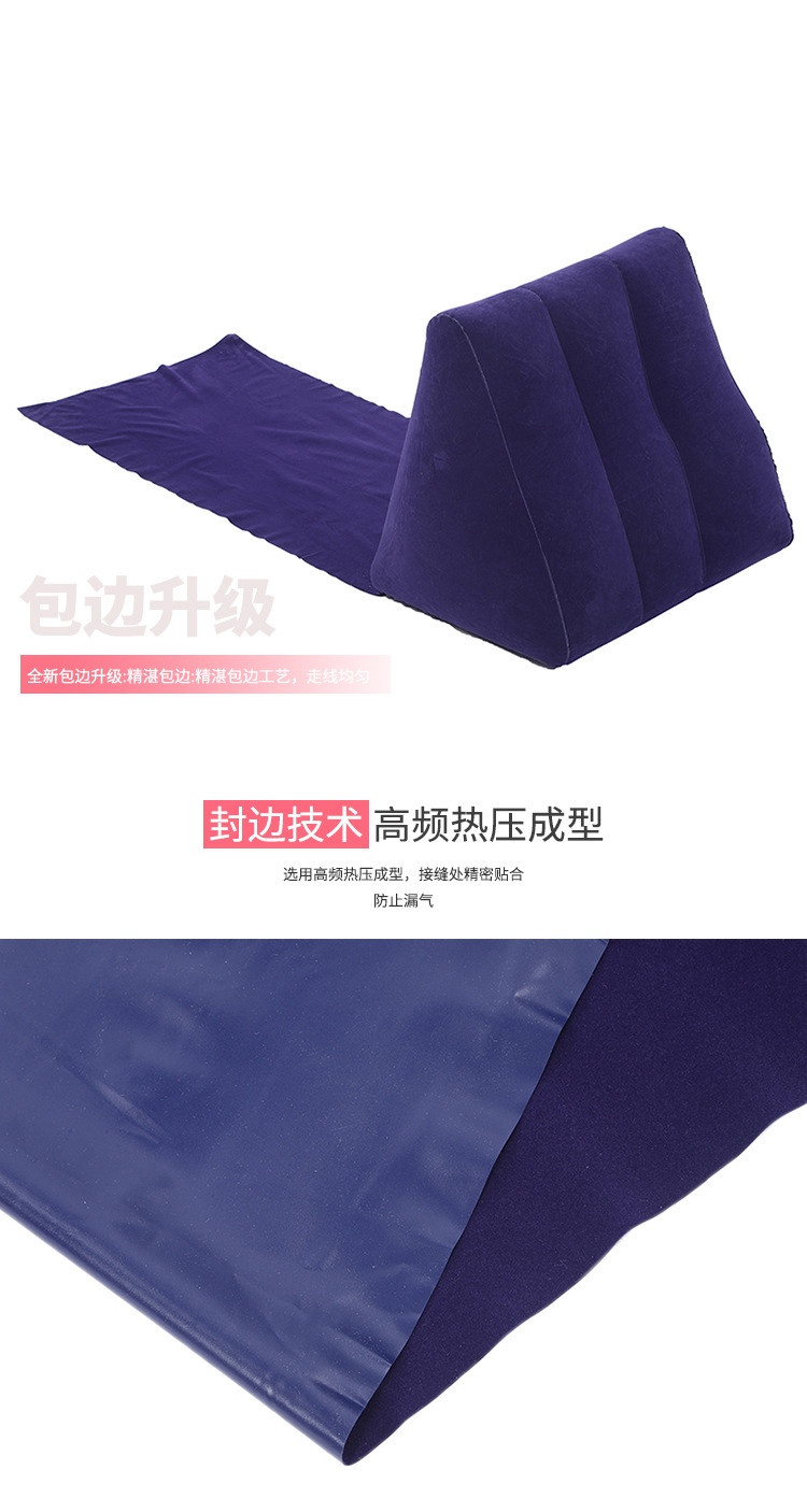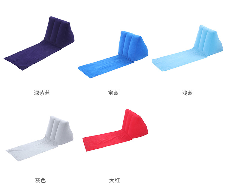 纯色简约户外旅行充气三角靠垫 新款PVC植绒沙滩三角形地坐垫