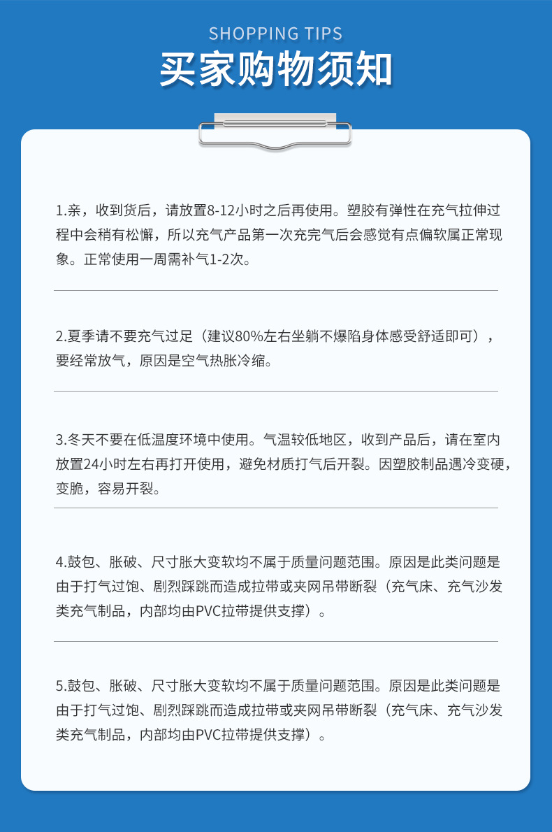 便携户外充气垫午休床垫加床储备便携式透明和蓝色任可充可充气